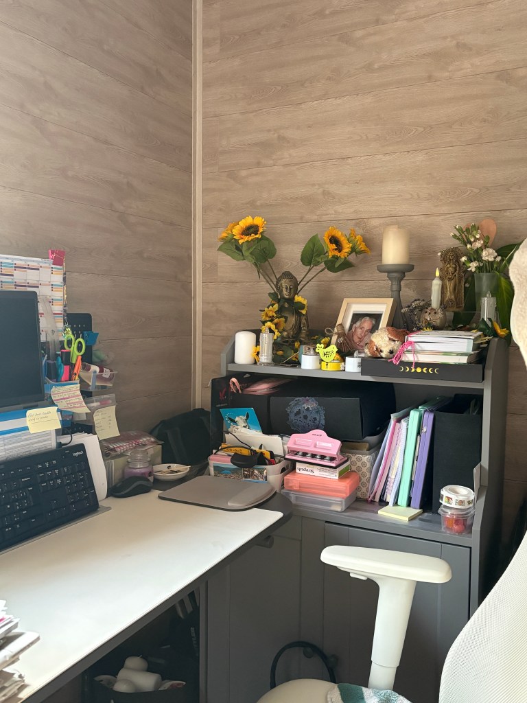 Nu niet panikeren. Het hoeft allemaal niet zo uitgebreid te zijn. Ik zelf heb een hoekje in mijn slaapkamer, waar een bureau staat. Eens het thuiswerk gedaan is, gebruik ik datzelfde bureau als heksenhoofdkwartier 🤣. Ik zorg altijd wel dat de plek opgeruimd is en netjes en dat ik alle taken afrond voor ik overstap van werkmodus naar heksenmodus.