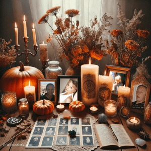 - Altaren: Veel heksen creëren altaren met kaarsen, kruiden, foto’s en andere items die de geestelijke wereld vertegenwoordigen. Dit kan tijdens een Samhain-ceremonie om de verbinding te versterken.