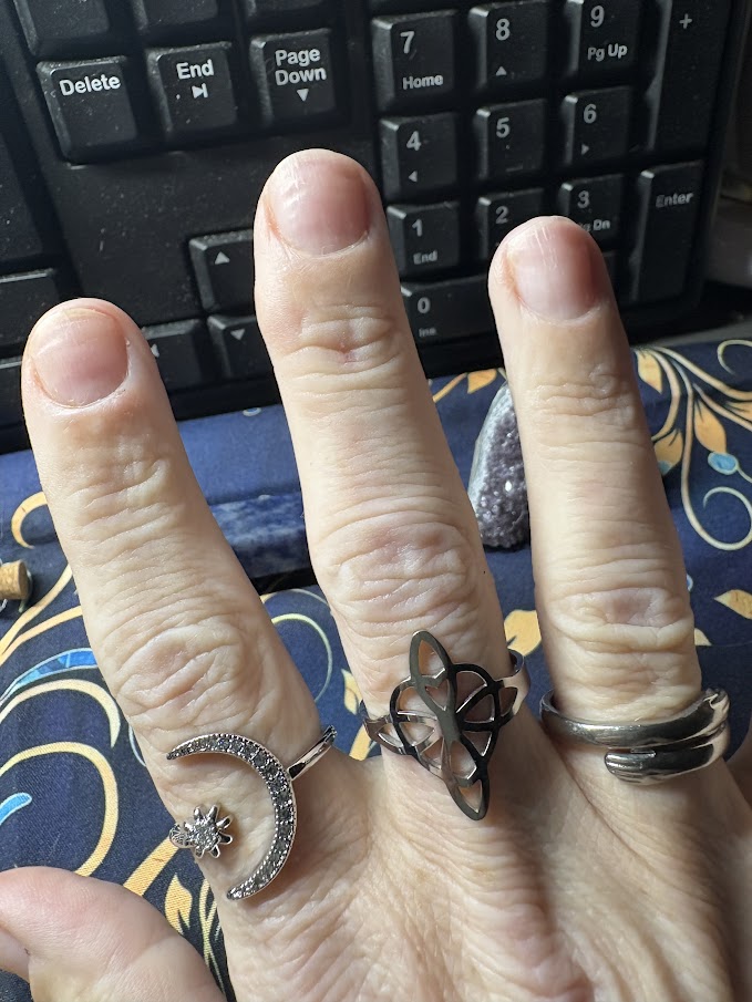 Zo draag ik bijvoorbeeld een heksenknoopring en een keltische knoop hanger.