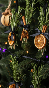 Of maak guirlandes of bosjes van gedroogde sinaasappels, kaneelstokjes en dennetakjes.